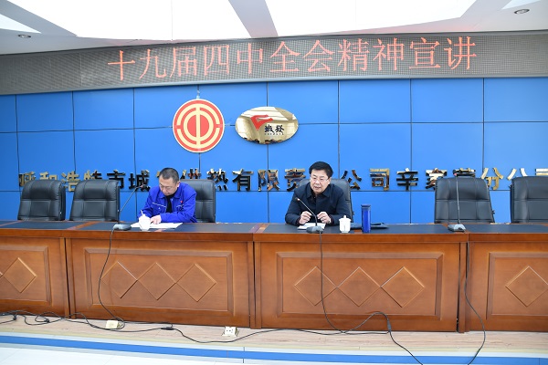 12月13日上午,城發(fā)公司黨委委員、副總經(jīng)理劉建軍同志在辛家營分公司二樓會(huì)議室宣講了十九屆四中全會(huì)精神。辛家營分公司全體黨員、發(fā)展對象、積極分子和環(huán)節(jié)干部共計(jì)55人參加了會(huì)議。支部書記王軍同志主持會(huì)議。