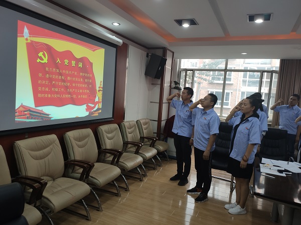 會上,兩位中共預備黨員舉行莊嚴的入黨宣誓儀式。誓言概括了中國共產(chǎn)黨對黨員的要求,也概括了黨員對黨組織和黨的事業(yè)應(yīng)該承擔的政治責任。希望他們終身牢記自己在黨旗下所立下的誓言,在今后用自己的實際行動實踐誓言,并克服自身的缺點和不足,不斷增強責任感、使命感,積極投身到工作中,做一名名副其實、合格的共產(chǎn)黨員。