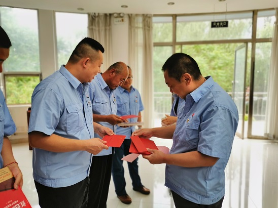 會(huì)上,黨支部為20余名在1月至6月入黨的黨員過了政治生日。王軍向過政治生日的同志贈(zèng)送書籍,發(fā)放政治生日賀卡,并帶領(lǐng)大家重溫入黨誓詞。