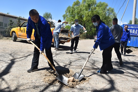 正喇嘛營(yíng)村有一條2公里的環(huán)村水泥路,是村民耕種和出行的重要道路,因車輛長(zhǎng)期碾壓,排水設(shè)施不完善等原因造成路面坑坑洼洼,影響村民和分公司職工的出行。為確保安全出行,金橋分公司黨支部組織黨員、積極分子開(kāi)展義務(wù)修路活動(dòng),為正喇嘛營(yíng)村修補(bǔ)村內(nèi)水泥路上大大小小的坑洼路面。