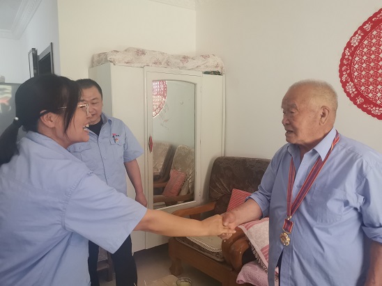 祁永成老人今年90歲高齡,1949年入伍,于1950年隨部隊跨過鴨綠江參加抗美援朝戰(zhàn)役,多次立功受獎,1955年加入中國共產(chǎn)黨,黨齡66年。辛家營分公司黨支部書記王軍同志代表黨支部送上慰問品和美好的祝福,隨后大家一起陪老人聊天,聆聽老人講述參加抗美援朝的歷史和難忘的故事。雖然已經(jīng)90歲的高齡,祁永成老人仍精神矍鑠,回憶起自己的抗戰(zhàn)的崢嶸往事時仍然神采奕奕。他說:“當年抗美援朝的戰(zhàn)場上,物資短缺,裝備落后,常常有敵人的飛機從頭頂?shù)涂章赃^,但是沒有一個人退縮,因為我們是為新中國在戰(zhàn)斗,我們肩負著人民和民族的期望”,說到動情處,還唱起了《中國人民志愿軍戰(zhàn)歌》。老人的講述樸實、真摯,沒有華麗辭藻,只有崢嶸歲月的赤誠初心,曾經(jīng)的歲月在老人家的講述下歷歷在目,從老人的講述中,我們深刻的感受到抗美援朝戰(zhàn)爭的艱辛,更體會到他們堅決捍衛(wèi)民族利益矢志不渝的決心。大家聽的熱血沸騰、眼眶濕潤,肅然起敬。