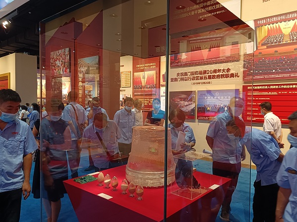 在展覽館,黨員同志們跟隨講解員的步伐,先后參觀了“建立中國(guó)共產(chǎn)黨,奪取新民主主義革命偉大勝利”“成立中華人民共和國(guó),進(jìn)行社會(huì)主義革命和建設(shè)”“實(shí)行改革開(kāi)放,開(kāi)創(chuàng)和發(fā)展中國(guó)特色社會(huì)主義”“推進(jìn)中國(guó)特色社會(huì)主義進(jìn)入新時(shí)代,全面建成小康社會(huì),開(kāi)啟全面建設(shè)社會(huì)主義現(xiàn)代化國(guó)家新征程”四部分展覽內(nèi)容。珍貴的文物實(shí)物、翔實(shí)的檔案資料、生動(dòng)的圖片視頻,再現(xiàn)了中國(guó)共產(chǎn)黨的百年奮斗歷程和取得的輝煌成就。參觀過(guò)程中,大家認(rèn)真聆聽(tīng)講解,不時(shí)駐足觀看,交流思想體會(huì)。
