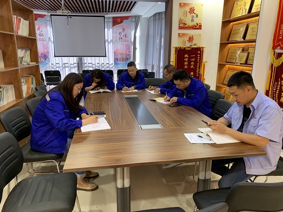 活動中,黨小組全體黨員抬頭挺胸,高舉右拳,莊嚴地宣誓,重溫入黨誓詞,時刻提醒自己牢記在黨旗下的錚錚誓言,認真思考“當初入黨為什么,現在為黨做什么,今后給黨留什么”,不忘初心,牢記使命,充分發(fā)揮黨組織的戰(zhàn)斗堡壘作用和黨員的先鋒模范作用,做一名稱職的、合格的共產黨員。隨后,第二黨小組開展共和國故事分享會,共同學習《百團大戰(zhàn)》,緬懷革命先烈的英勇事跡和崇高精神,激發(fā)愛國之情。