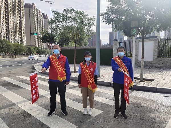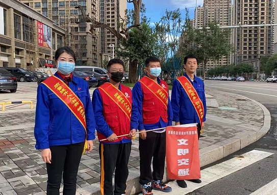 上午8:30,黨員同志們身穿紅色馬甲,佩戴黨徽和綬帶,手拿指揮交通督導(dǎo)旗在愛民街與豐州北路交叉十字路口,協(xié)助交警指揮交通,督導(dǎo)市民文明出行。“綠燈行、紅燈停”同志們精神抖擻的站在十字路口,拿著紅色指揮旗指揮著交通。