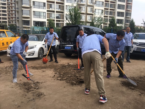 9月2日上午,橋靠分公司黨總支部組織黨員前往金漢御園小區(qū)南門,對(duì)門口附近受損道路的路面進(jìn)行維修、平整。