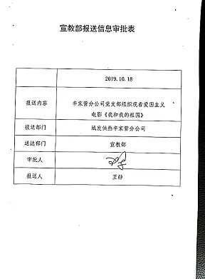 10月17日下午,辛家營(yíng)分公司黨支部組織全體黨員、發(fā)展對(duì)象、積極分子、環(huán)節(jié)干部、共青團(tuán)員以及職工代表共計(jì)58人在電影院觀看了愛(ài)國(guó)主義影片《我和我的祖國(guó)》,以慶祝新中國(guó)成立70周年、弘揚(yáng)愛(ài)國(guó)主義精神、激發(fā)愛(ài)黨愛(ài)國(guó)熱情。