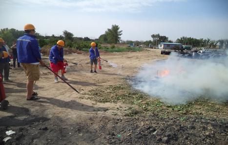 本次演練嚴(yán)格按演練預(yù)案進(jìn)行。為保證演練的實(shí)用性及針對(duì)性,安全生產(chǎn)技術(shù)處根據(jù)各車(chē)間火災(zāi)性質(zhì)的不同類(lèi)別,將演練分為兩部分進(jìn)行。6月21日上午9:30分,第一部分演練開(kāi)始,由電氣、儀表、化驗(yàn)室、司爐等部門(mén)(車(chē)間),模擬電氣設(shè)備著火,用干粉、二氧化碳等滅火器滅火。下午15:30分,第二部分演練開(kāi)始,輸煤車(chē)間、水化車(chē)間部分人員模擬輸煤車(chē)間28米煤廊因檢修引起火災(zāi),使用室內(nèi)消防系統(tǒng)自動(dòng)啟泵水滅火系統(tǒng)。