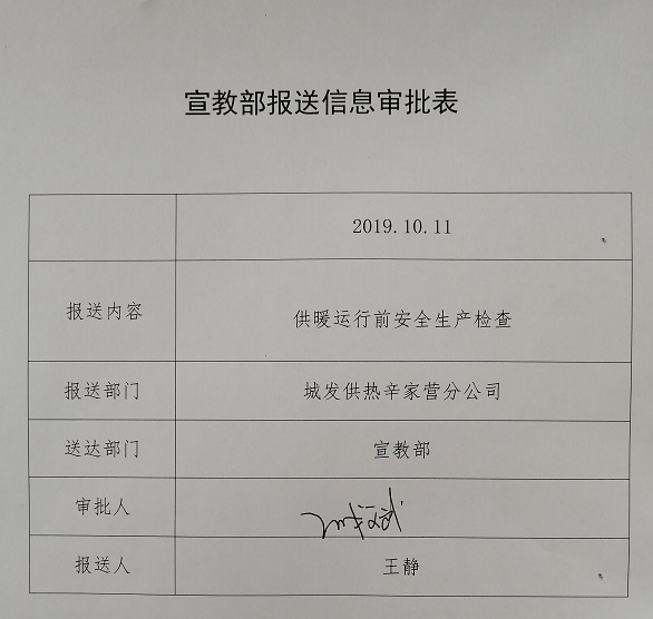 10月9日下午,城發(fā)公司副總經(jīng)理吳利勤、總工程師胡月在、安全生產(chǎn)部部長(zhǎng)鄭凱等一行人赴辛家營(yíng)分公司開(kāi)展供暖運(yùn)行前的安全大檢查,主要對(duì)辛家營(yíng)分公司的脫硫塔、省煤器、脫硝,出渣等改造項(xiàng)目進(jìn)行了實(shí)地檢查。