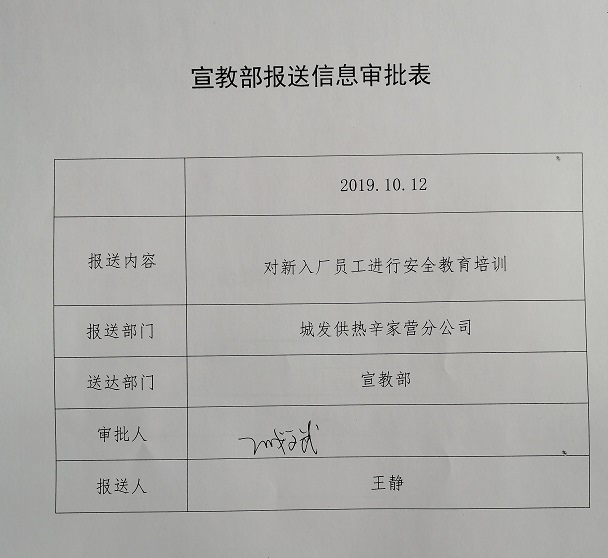 10月12日上午,辛家營分公司安全生產(chǎn)技術處組織新入廠的30名員工進行“三級”教育培訓。本次培訓由分公司專職安全員王崇英主講。