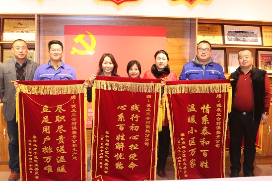 11月1日,泰和尚都小區(qū)熱用戶(hù)代表將一面火紅的錦旗送到三合村分公司,以此表達(dá)分公司對(duì)該小區(qū)二次管網(wǎng)改造提供的優(yōu)質(zhì)服務(wù)表示感謝。