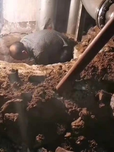 由于地面管道老化嚴(yán)重且全部為直埋管線,給查找失水工作帶來了嚴(yán)重的困難。運營四所根據(jù)現(xiàn)場情況,召開會議制定方案,即在水箱內(nèi)加顏料,直埋段打探坑,最終確定漏點。最終確定失水點的具體位置在水文站出站口直埋管段。