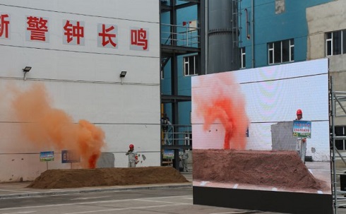 在城發(fā)橋靠分公司廠區(qū)內(nèi)模擬演練。