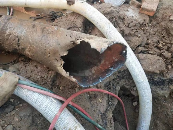 1月2日上午8:00時,橋靠分公司組織搶修隊到達現(xiàn)場,開始進行搶修前期準備工作。經(jīng)過6個小時時間最終確定了失水點。