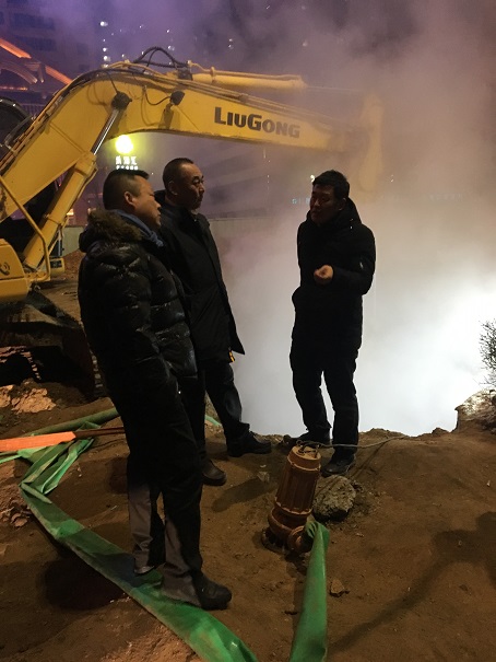 下午城發(fā)公司吳利勤副總經(jīng)理親赴到現(xiàn)場指揮搶修工作。此次失水為泄水管腐蝕嚴重所致,14:30時組織各熱力站人員開始關(guān)閉閥門,進行泄水;22:30時各熱力站無水后,組織專業(yè)人員進入地坑,將DN100泄水管拆除并進行焊接。
