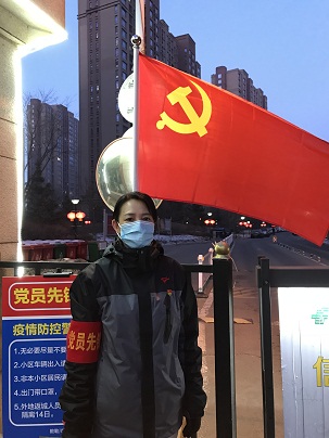 一個黨員就是一面旗幟,作為城發(fā)供熱橋靠分公司一名十七年黨齡的基層老黨員,她毫不猶豫報名成為志愿者,一個通知就到崗,佩戴黨員徽章,袖標(biāo),放棄春節(jié)假期休息,協(xié)同社區(qū)工作人員做好防控工作。沒有隔離服,只有普通的一次性醫(yī)用口罩,一張長桌子,一支筆,但身后卻有一面鮮紅的黨旗,始終屹立在我們的心中,讓我們責(zé)無旁貸。在春寒料峭的戶外,不辭辛苦地值守在小區(qū)門口,舍小家,顧大家,甘愿奉獻(xiàn),登記出入車輛信息,測體溫,做宣傳,為小區(qū)業(yè)主辦理出入證,事無巨細(xì),從不敷衍……
