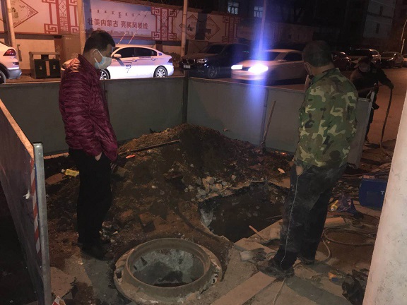 上午9點張國梁組織搶修隊伍趕到現(xiàn)場,經(jīng)過各種排查,搶修人員發(fā)現(xiàn)是前進(jìn)巷的長興大廈門口主管道的DN150直埋補(bǔ)償器嚴(yán)重腐蝕,造成失水。維修需要破路面挖溝進(jìn)行地下作業(yè),取掉舊的補(bǔ)償器重新更換DN150鋼管,經(jīng)過1個多小時的挖掘,找到了漏水點。所長囑咐搶修人員,在完成搶修的同時一定要做好人員的防護(hù)工作并通知負(fù)責(zé)該轄區(qū)的催費員及客服人員要向用戶做好解釋工作。