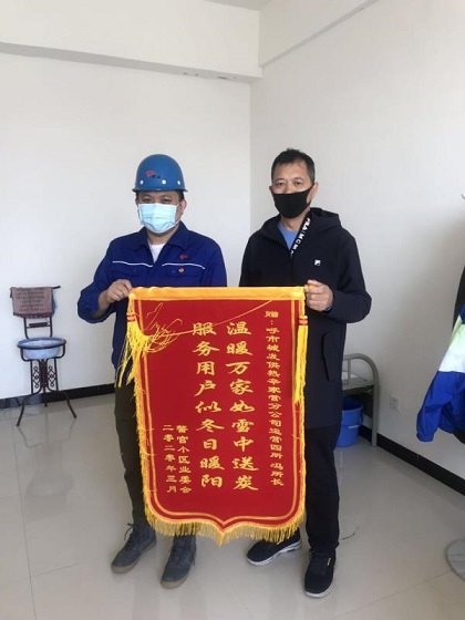 4月10日上午,警官小區(qū)業(yè)委會(huì)代表將寫有“溫暖萬(wàn)家如雪中送炭, 服務(wù)用戶似冬日暖陽(yáng)”的錦旗送到辛家營(yíng)供熱分公司運(yùn)營(yíng)四所蒙校熱力站,向辛家營(yíng)分公司辛勤的工作人員表示感謝。
