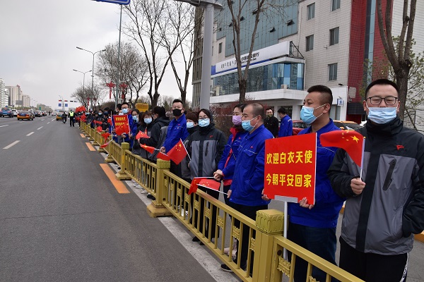逆行出征寒冬烈,英雄歸來春意濃!新冠肺炎疫情發(fā)生以來,在祖國和人民最需要的時候,呼和浩特市的廣大醫(yī)務(wù)工作者不畏艱辛,不懼生死,投入到疫情防控斗爭中,堅守戰(zhàn)“疫”一線。4月16日,呼和浩特第四批援鄂醫(yī)療隊共計36名醫(yī)務(wù)人員在圓滿援助任務(wù),結(jié)束為期14天的集中隔離和休整,回到了家鄉(xiāng)。為積極響應(yīng)總公司的號召,辛家營分公司黨支部組織30名黨員、干部、入黨積極分子、團員青年等參加援鄂醫(yī)療隊平安凱旋歡迎儀式。