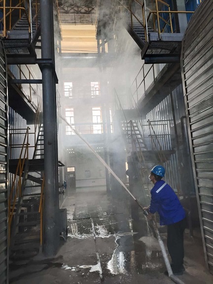本次演練在輸煤車(chē)間2#煤廊28m處、司爐6m操作平臺(tái)設(shè)置了三處煙火場(chǎng)景。9:30分演練開(kāi)始,輸煤車(chē)間、司爐B車(chē)間接到著火通知后,工作人員立即趕往著火現(xiàn)場(chǎng),根據(jù)火勢(shì)情況,就近使用消防水槍進(jìn)行滅火。檢修車(chē)間、物業(yè)公司分別在各自區(qū)域內(nèi)進(jìn)行了消防火災(zāi)演練。