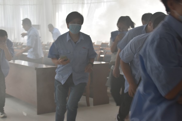 培訓結(jié)束后,安全生產(chǎn)技術(shù)處在教官的指導下,組織參加培訓的人員開展消防逃生演練。辦公樓二樓、三樓共設(shè)置4處煙火場景,警報響起后,大家積極配合,服從指揮,在最短的時間內(nèi)安全有序、快速的到達安全地點,演練達到了預期的效果。