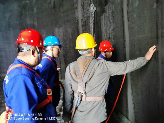 驗收過程中,驗收小組搭乘電動吊籃,對煙囪內(nèi)部120米高的防腐施工質(zhì)量和工藝進行了仔細(xì)查驗,對現(xiàn)場發(fā)現(xiàn)的小問題和不足之處提出了具體整改意見,并要求施工單位限期整改。此次驗收為煙囪竣工驗收提供了質(zhì)量保障。
