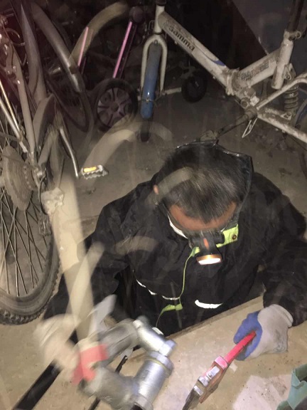 經(jīng)過仔細(xì)排查,判斷原因?yàn)楣艿蓝氯斐傻?。原本用戶家中的用熱設(shè)施不在供熱公司的管轄范圍內(nèi),但是城發(fā)橋靠分公司本著對用戶負(fù)責(zé)的原則,即刻到地溝內(nèi)展開查找原因。因地溝多年無人清理被各色生活垃圾覆蓋得嚴(yán)嚴(yán)實(shí)實(shí),根本無法進(jìn)行井下作業(yè)。為此師傅們只好先進(jìn)行垃圾清理,待垃圾清理干凈后再進(jìn)入地溝,地溝內(nèi)陰暗潮濕又有大量生活污水,檢修工人頂著刺鼻的氣味,在空間狹小的地溝內(nèi)工作著。檢修師傅們把供熱支管用工具切開將管道進(jìn)行沖洗,管道內(nèi)的水銹垃圾被清理干凈后,快速接頭將管道接上。