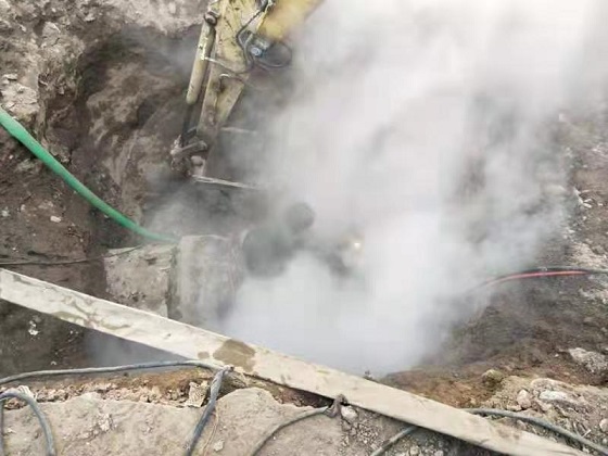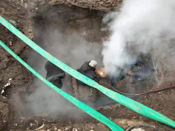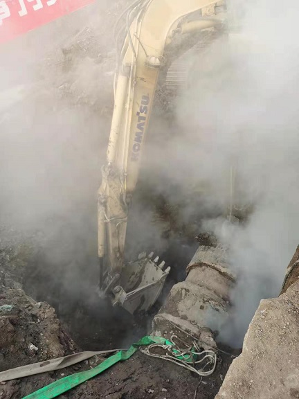 分公司立即組織人員連夜進(jìn)行搶修,現(xiàn)場(chǎng)采用挖掘機(jī)和人工開挖相結(jié)合的方式查找失水點(diǎn),12月4日下午4時(shí)找到失水點(diǎn)。找到失水點(diǎn)后,檢修人員關(guān)閉漏點(diǎn)前后端閥門,運(yùn)營所人員開始站內(nèi)泄水。此次失水管網(wǎng)管徑為DN900,管道內(nèi)水量較多,泄水耗時(shí)長,室外氣溫較低,給搶修工作增加了難度。搶修人員不分晝夜全力投入到搶修工作中,經(jīng)過52小時(shí)不間斷搶修,于12月6日中午恢復(fù)了供熱。