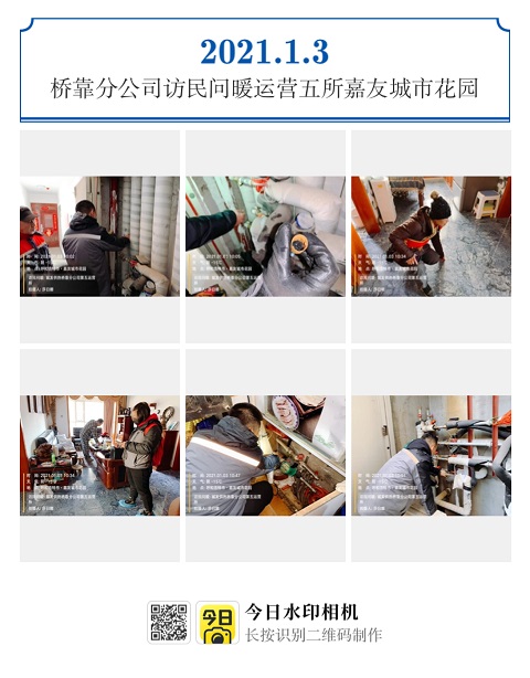 2020年12月31日、2021年1月3日,橋靠分公司“訪民問暖”小組走訪竹園西區(qū)小區(qū)和嘉友城市花園小區(qū),共走訪用戶46戶,其中到訪不遇15戶,現(xiàn)場解決不熱問題9戶。