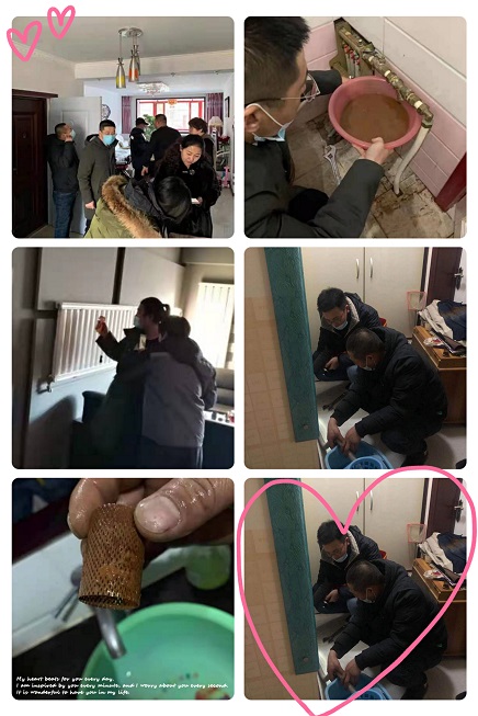 2021年1月3日,走訪了嘉友城市花園小區(qū),該小區(qū)有用戶打電話到運營所和物業(yè)反映家中溫度不高,希望工作人員能上門查看。訪民問暖小組著重對這些用戶逐戶上門排查。一共走訪10戶用戶,其中1戶到訪不遇?,F(xiàn)場對8戶用戶的管井內(nèi)入戶進水管濾網(wǎng)進行了清洗,放水,并查看了室內(nèi)分集水器,閥門未全開的全部打開,有集氣的進行排氣處理,針對老舊分集水器,給出整改方案,同時采集了室內(nèi)溫度,后期持續(xù)觀察。還有1戶商業(yè),是一個飯店,是老大難問題,室溫15℃,長期不熱,不熱的主要原因是用戶裝修時將一樓水暖改成地暖,二樓保持水暖,整體屋內(nèi)不循環(huán),一樓分集水器加裝循環(huán)泵,循環(huán)泵沒有開到最大。查看管井時發(fā)現(xiàn)供水溫度正常,回水沒有溫度,而且回水閥門損壞不易開關(guān)。工作人員現(xiàn)場在管井內(nèi)將濾網(wǎng)拆下清洗,大量的放水,室內(nèi)分集水器多余的濾網(wǎng)拆除,將循環(huán)泵開到最大,觀察了一會兒后,回水管慢慢有了溫度。運營所供熱管家將對室內(nèi)溫度進行持續(xù)觀察。