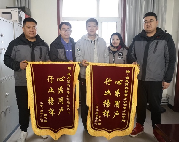 2020年12月30中午,巨海七區(qū)用戶(hù)送來(lái)一面寫(xiě)著“心系用戶(hù),行業(yè)榜樣”的錦旗及一封感謝信。城發(fā)橋靠分公司第六運(yùn)營(yíng)所所長(zhǎng)耿焱和客服人員熱情的接待了七區(qū)用戶(hù)。