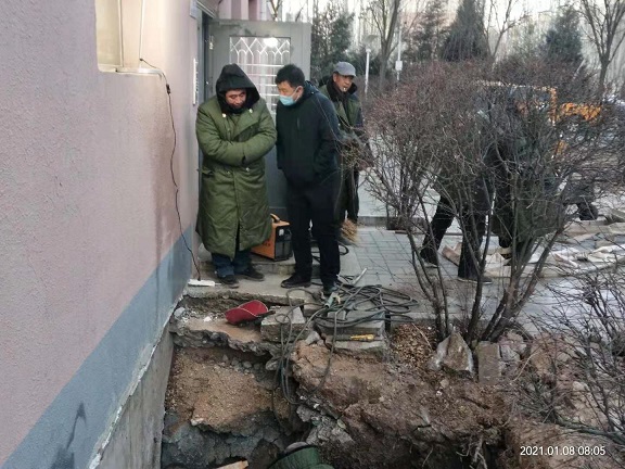 1月10日下午2點半,城發(fā)橋靠分公司檢修車間的工作人員在例行巡查中發(fā)現(xiàn)前進巷師大三熱力站進站井北側(cè)柏油路面上有一個窟窿,正往出冒熱氣。巡查人員第一時間將現(xiàn)場的情況匯報管轄內(nèi)第四運營所所長馮俊和分公司領(lǐng)導(dǎo),并在漏水周圍設(shè)立安全圍擋,保障安全。