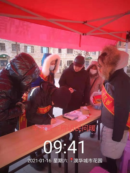 1月16日,辛家營分公司開展了本采暖年度第十四次“訪民問暖”專項(xiàng)活動。本期“訪民問暖”活動走訪了澳華城市花園與錦泰榕城小區(qū),共計(jì)走訪用戶31戶,填寫了《訪民問暖記錄表》20份、《居民供熱問卷調(diào)查表》18份、發(fā)放城發(fā)供熱服務(wù)手冊15本。