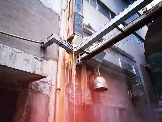 檢查發(fā)現(xiàn),從B車間零米排到室外的蒸汽,造成北墻與除塵車間過(guò)道多處結(jié)冰,存在巡檢人員易滑倒的安全隱患;A車間零米鍋爐排氣筒冷凝水過(guò)多,從法蘭處外泄造成大片積水,存在巡檢人員易滑倒的安全隱患。