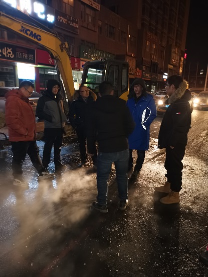 19日晚上10時(shí),歷經(jīng)15個(gè)小時(shí)搶修完畢。搶修結(jié)束后,搶修師傅們從挖開的坑里出來后,身穿的工作服上沾滿了泥漿,衣服也被熱氣蒸濕了,時(shí)值寒冬,室外溫度零下16℃,衣服很快被凍硬。一位剛從坑里出來打著哆嗦的搶修師傅告訴筆者,“管道里水的溫度近90°,溝里熱氣騰騰,身上都冒汗呢,但一出地面,100多度的溫差,感覺直接就凍到骨頭里了,腿都凍直了,邁不了步。”