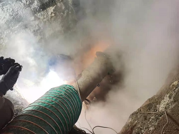 “如果關(guān)閉閥門,會(huì)影響周邊正常供暖,因此,我們選擇了帶壓搶修、頂水作業(yè),該方案需要對(duì)高溫高壓水采取導(dǎo)流、防濺措施,也要克服管道高壓對(duì)焊接工藝的高要求,雖然難度大,安全作業(yè)要求高,但不影響用戶供暖!”劉強(qiáng)說,