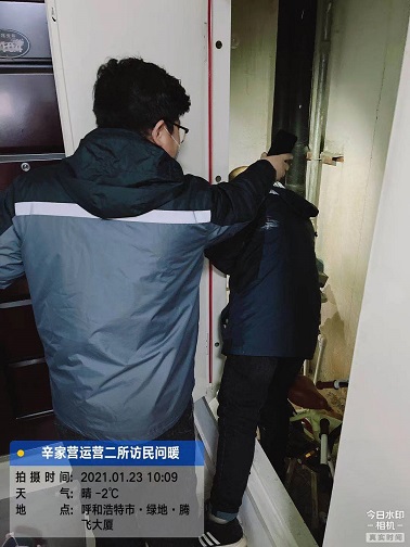 1月23日,城發(fā)供熱辛家營分公司持續(xù)開展 “訪民問暖”專項活動。此次活動走訪了上海綠地五期,共走訪23戶,填寫了《訪民問暖記錄表》《居民供熱問卷調(diào)查表》23份,發(fā)放城發(fā)供熱服務手冊16本,為用戶排氣、清洗過濾網(wǎng)8戶,經(jīng)測溫大多數(shù)用戶室內(nèi)溫度在19-22℃。