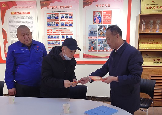 春節(jié)來臨之際,為了讓困難黨員真正感受到城發(fā)公司黨委的溫暖和關懷。2月8日上午,城發(fā)公司黨委副書記、工會主席張永,黨委辦公室主任胡日查一行來到三合村分公司慰問困難黨員,為4名困難黨員送去慰問金和新春祝福。