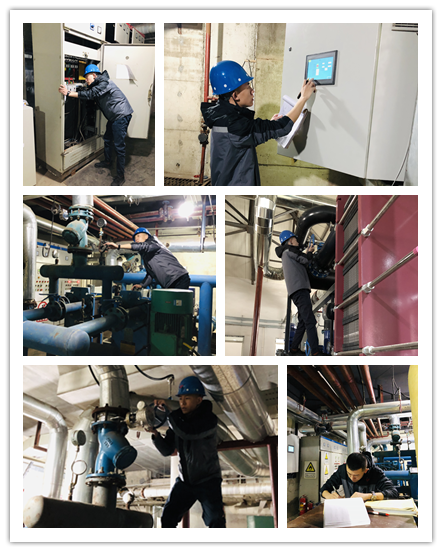 “因?yàn)楣嵩O(shè)備及管線需要24小時(shí)巡檢,所以春節(jié)大家都留在這里過(guò)年。一天三次是基本的巡檢要求,除了設(shè)備巡檢還要記錄數(shù)據(jù)、抄表,發(fā)現(xiàn)異常,需要立即報(bào)備。”王祺告訴筆者,邊說(shuō)邊帶上工具出發(fā),去往第一站。筆者一路跟隨,來(lái)到供熱站內(nèi),看到他在配電室查看了電表讀數(shù)后,嫻熟地爬上設(shè)備高處,查看各空開(kāi)、各接線口有無(wú)異常,接著又跳下來(lái)查看旁邊的水表讀數(shù),電磁閥狀態(tài)各閥門(mén)狀態(tài)、水箱有無(wú)滲水外溢情況和補(bǔ)水泵排氣、流量計(jì)是否正常工作,檢查了二次管網(wǎng)分集水器、除污器、過(guò)濾器、循環(huán)泵、換熱器及總閥門(mén)和各環(huán)路閥門(mén),最后來(lái)到控制柜、自控柜前,他認(rèn)真查看各項(xiàng)參數(shù),隨時(shí)做著記錄,并填寫(xiě)巡檢日志。一站巡檢完畢后還要去去第二站、第三站...每一站,他都要確認(rèn)站內(nèi)各遠(yuǎn)傳壓變,溫變上傳是否有問(wèn)題,檢查防盜門(mén)窗、屋頂、排水情況是否正常,核對(duì)滅火器和各類工具位置,清掃垃圾雜物,確保站內(nèi)安全及衛(wèi)生。雖然線路上每個(gè)熱力站的情況他都熟記于心,但站內(nèi)設(shè)施結(jié)構(gòu)錯(cuò)綜復(fù)雜,需要無(wú)數(shù)次爬高下低,一次巡檢下來(lái),最少需要三、四個(gè)小時(shí)。