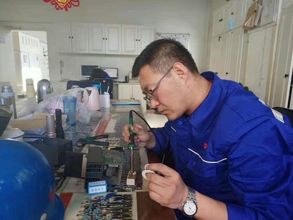 孫英全是電儀車間的技術(shù)骨干,2001年入廠,這是他堅(jiān)守的第20個(gè)春節(jié)了,2021年的第一班崗,他仍然沒有回河北省懷安縣西沙城老家過年。問及他沒有回家有何感受,他說:“春節(jié)期間,廠里的事情都比較多,另外不回家過年也是不給國家找麻煩,不給廠里添麻煩,對(duì)自己家里也是好的。我給家里打個(gè)電話拜年就好,他們都能理解。”這不,他又忙著為左右城循環(huán)泵啟停頻繁而親臨現(xiàn)場了,專注的孫師傅絲毫沒注意到周圍同事的拍攝。
