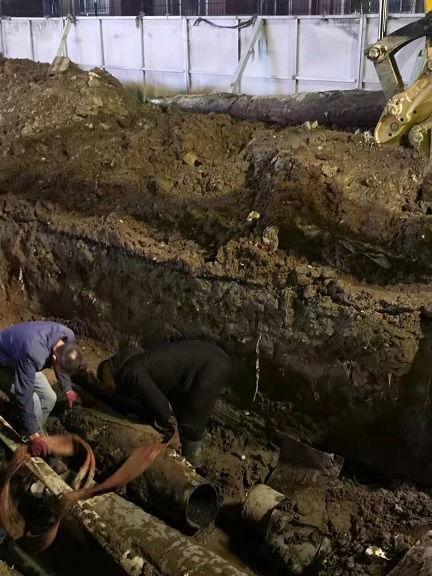 經(jīng)過勘驗(yàn),確定為一次管網(wǎng)支線管道漏水。由于管網(wǎng)埋藏較深,管道上方有電纜、二次管網(wǎng),大大增加了施工難度。在搶修中,挖掘機(jī)先對(duì)故障點(diǎn)周圍進(jìn)行開挖,再由工人對(duì)供熱管道上的障礙物進(jìn)行排除,最終發(fā)現(xiàn)管道漏點(diǎn)位置多處跑水,管道腐蝕比較嚴(yán)重,決定更換管徑為DN250的14米管道。