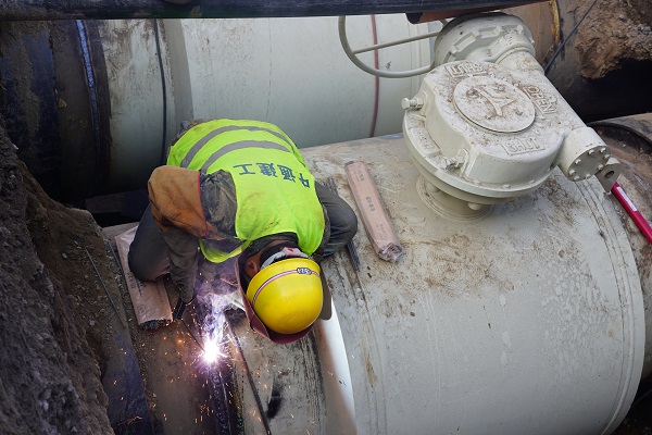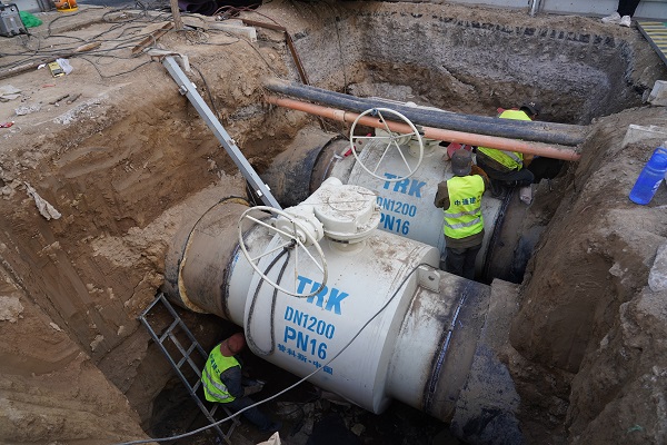 在金橋路一次管網(wǎng)改造施工現(xiàn)場(chǎng),筆者看到DN1200主管線的球閥焊接工作已接近尾聲。據(jù)介紹,之后將陸續(xù)進(jìn)行探傷、保溫、閥門井砌筑等工程。該處工程是在主管網(wǎng)加裝管道閥門,起到對(duì)主線關(guān)斷的作用,在冬季供暖期遇到突發(fā)事件可避免造成大面積停供,有效保障金橋區(qū)域今冬的正常供暖,預(yù)計(jì)9月中旬完工。