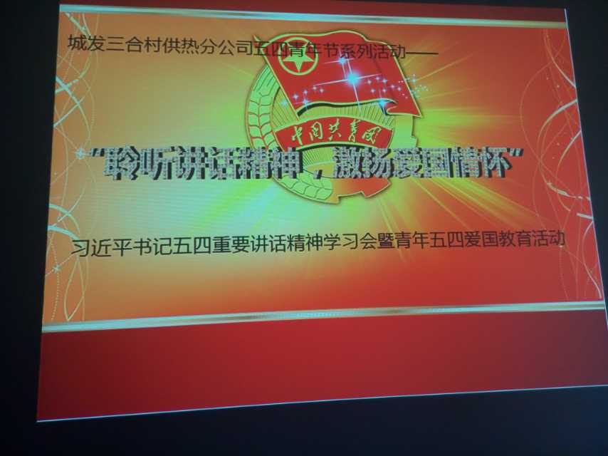 三合村供熱分公司團支部于5月30日下午組織青年團員召開了"聆聽講話精神,激揚愛國情懷"習(xí)近平總書記“五四”重要講話學(xué)習(xí)會。