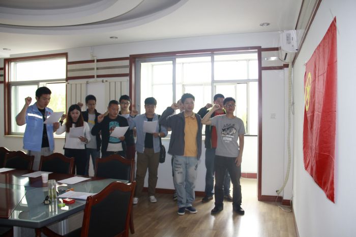 最后支部書記與10名團員代表一起面對團旗、一起舉起右手、一起大聲地重溫入團誓詞。