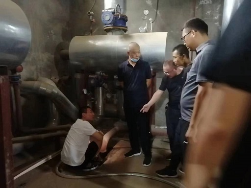 走訪中,每到一個運營所首先查看了當天人員值班情況,并仔細地詢問了各所防汛物資準備情況。在理想佳苑熱力站和所里工作人員一起查看了地下站的積水坑和備用排污泵情況。在中海錦繡城熱力站和宇泰熱力站查看了站內(nèi)滲漏點,并要求運營所負責人盡快和物業(yè)聯(lián)系,解決滲水點存在的安全隱患,要即刻做好設備的防滴漏防水保護。在檢修所一次網(wǎng)抽水現(xiàn)場作業(yè)現(xiàn)場,要求近兩天停止抽水作業(yè),保證施工作業(yè)安全,同時將工作重心轉(zhuǎn)移到近兩天防汛排水保障搶險任務中。