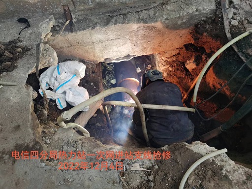 12月4日早上,運(yùn)營(yíng)一所巡站人員發(fā)現(xiàn)電信四分局熱力站一次網(wǎng)進(jìn)站管道附近有熱氣冒出,確定為一次網(wǎng)供水管道發(fā)生泄漏。搶修工作于下午六點(diǎn)完工,并恢復(fù)供熱。