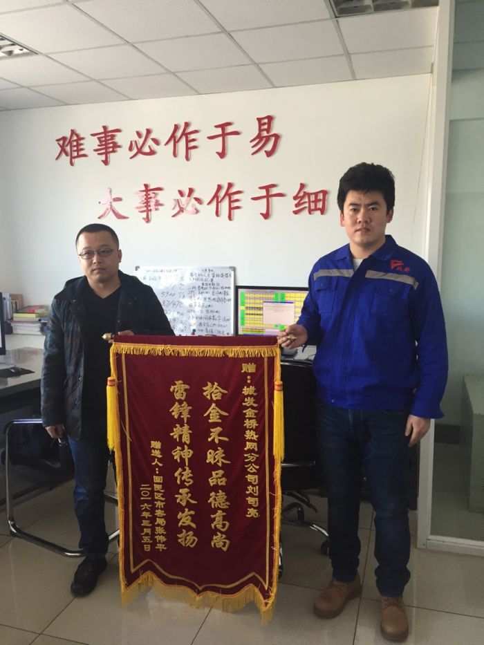 三月是一個(gè)講文明、樹新風(fēng),讓雷鋒精神吹遍社會每一個(gè)角落的季節(jié),就在“雷鋒月”剛剛開始,城發(fā)金橋熱網(wǎng)分公司黨群工作處接到了感謝電話,感謝我們身邊拾金不昧的“小雷鋒”分公司調(diào)度室調(diào)度長劉司亮。