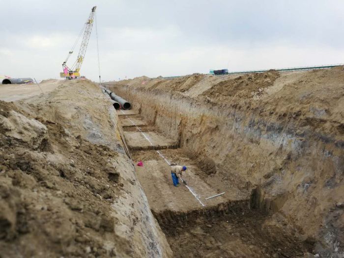 二標(biāo),管道安裝864米;繞城高速頂管涵洞找平層完成。